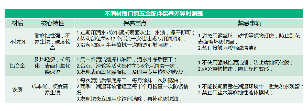 门窗五金配件保养常识: